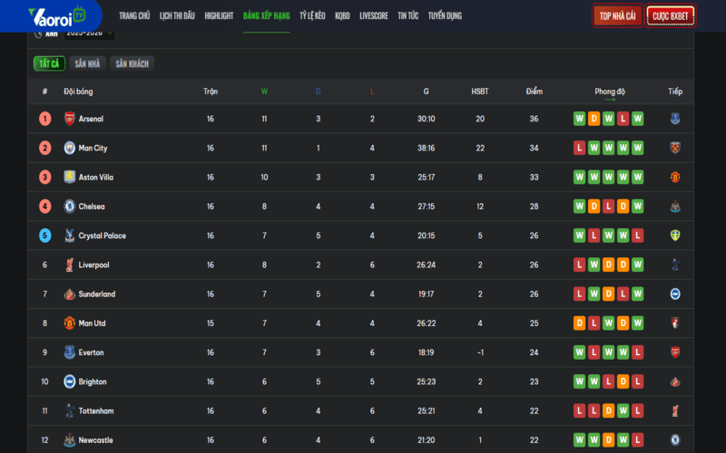 Trong bối cảnh bóng đá ngày nay không còn chỉ được theo dõi qua truyền hình hay sân vận động, việc cập nhật thông tin trực tuyến đã trở thành thói quen quen thuộc của đông đảo người hâm mộ. Chỉ cần nhìn vào thứ hạng, người xem đã có thể hình dung đội nào đang bứt phá, đội nào hụt hơi và đâu là những cuộc cạnh tranh đáng chú ý ở giai đoạn tiếp theo. Giữa rất nhiều website thể thao hiện nay, không phải nền tảng nào cũng đảm bảo được độ đầy đủ và chính xác của bảng xếp hạng. Đây chính là lý do Vao Roi TV được đông đảo người dùng tin tưởng trong thời gian dài.