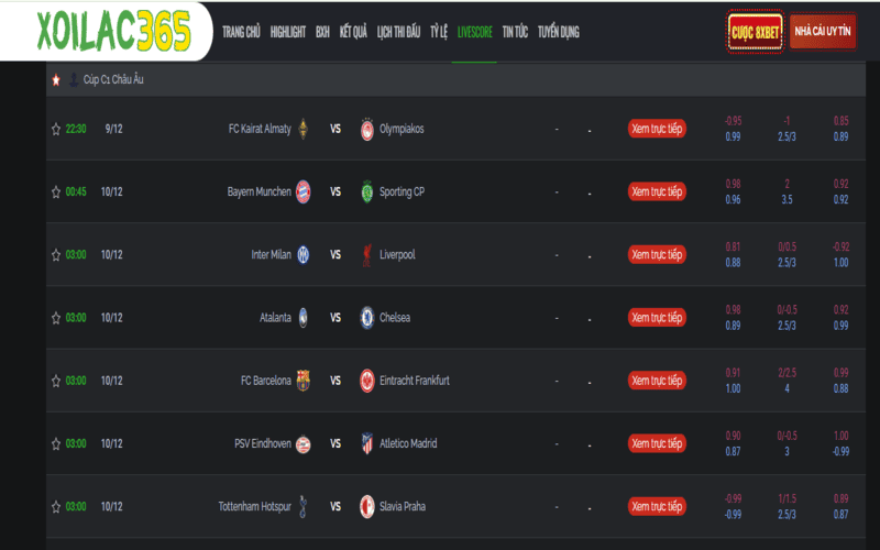 Nền tảng luôn cập nhật đầy đủ lịch thi đấu từ vòng bảng, vòng loại trực tiếp, bán kết cho tới chung kết. Thông tin trình bày rõ ràng, dễ theo dõi, giúp bạn không bỏ lỡ bất kỳ màn thư hùng nào giữa những ông lớn như Real Madrid, Bayern, Man City hay Barcelona.