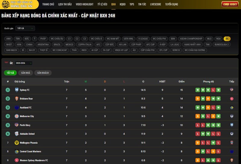 Bảng xếp hạng trên Socolive cũng thay đổi theo. Anh em nào thích soi top 4, top 6 hay cuộc đua trụ hạng thì chắc chắn sẽ hài lòng.